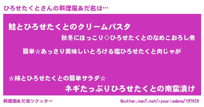 | 胡散臭い通販商品みたいなあだ名 | 『前代未聞の健康食品…その名も「ひろせたくと」』 |