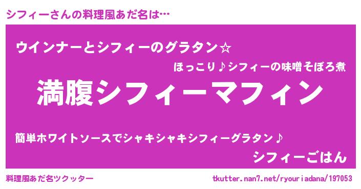 | 意味不明あだ名 | 『永久保存シフィー』『ペロリンシフィー』 |