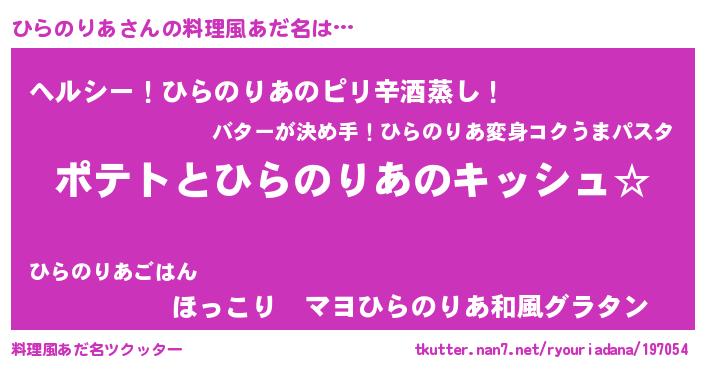 | ポケモン風あだ名 | 『ヒヒラノリア』『ヒラセウス』 |
