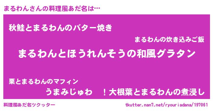 | 男性向けラノベタイトル風あだ名 | 『転生したらまるわんだった件』 |