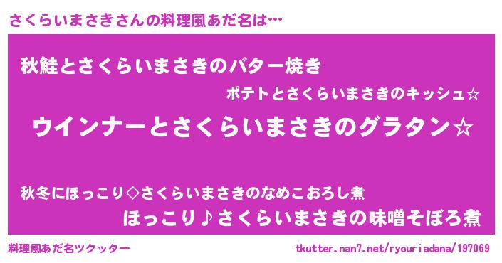 | 可愛いあだ名 | 『さくちー』『さくらいまさきママ』 |