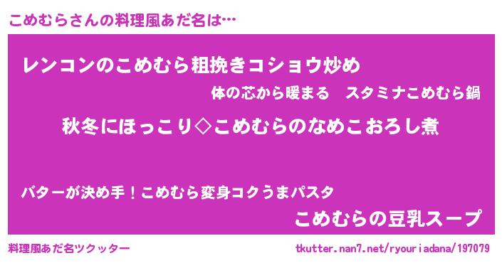 | 意味不明あだ名 | 『自称こめむら』『こめむらフォーエバー』 |