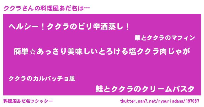 | 意味不明あだ名 | 『永久保存ククラ』『自称ククラ』 |