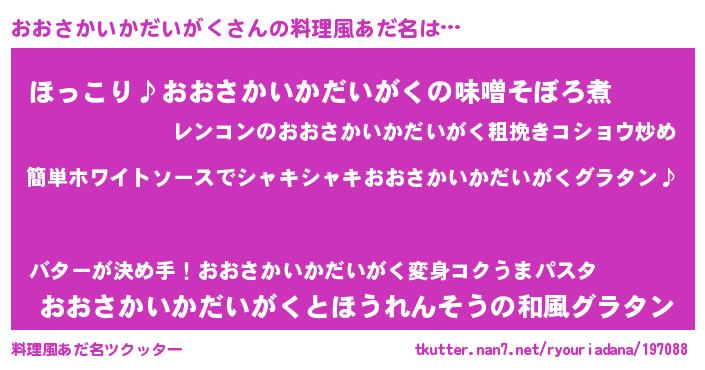 | 男性向けラノベタイトル風あだ名 | 『おおさかいかだいがくの嫁は女の子じゃないと思った?』 |