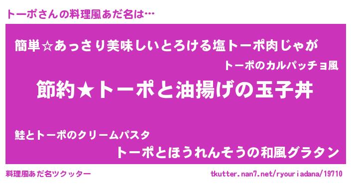 | 男性向けラノベタイトル風あだ名 | 『トーポアートオンライン』 |