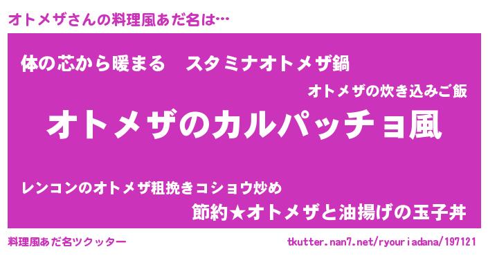 | 意味不明あだ名 | 『住所不定無職オトメザ(89歳)』 |