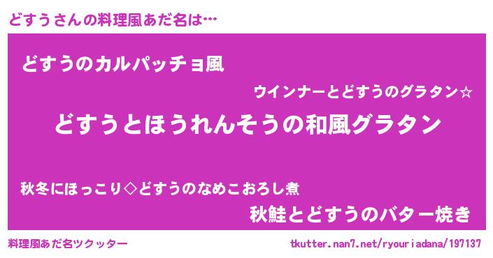 | ヘコむあだ名 | 『どすう(遠い目)』『つくし』 |