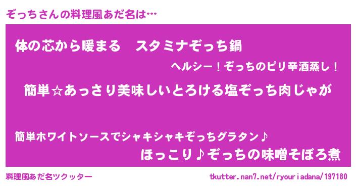 | ヘコむあだ名 | 『ぞっち(笑)』『つくし』『ぞっお』 |
