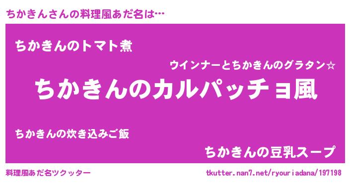 | ヒーロー風カッコイイあだ名 | 『仮面チカダー』『正義の使者ちかきん』 |