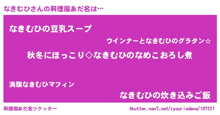 | ポケモン風あだ名 | 『ナキゴンZ』『ヒナキムヒ』 |