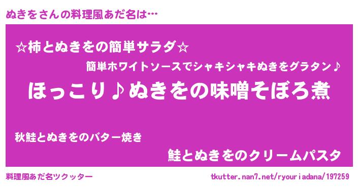 | 男性向けラノベタイトル風あだ名 | 『ぬきをの憂鬱』『緋弾のヌキヲ』 |