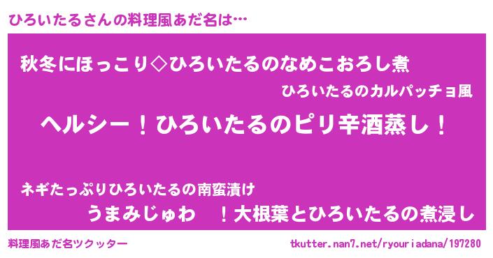 | 男性向けラノベタイトル風あだ名 | 『Re:ひろいたるから始める異世界生活』 |