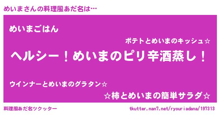 | ヘコむあだ名 | 『めいを』『つくし』『めいっふぃ~』 |