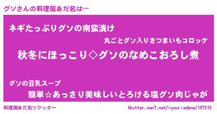 | ヘコむあだ名 | 『グソにゅー』『グソ(笑)』『つくし』 |