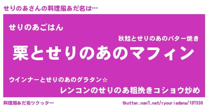 | 意味不明あだ名 | 『しいたけ科せりのあ属』『自称せりのあ』 |