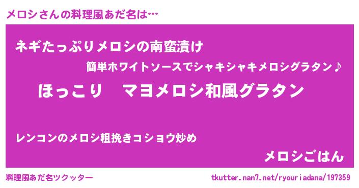 | ヒーロー風カッコイイあだ名 | 『仮面メロダー』『スーパーメロシ』 |