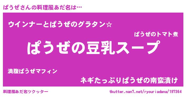 | 胡散臭い通販商品みたいなあだ名 | 『信頼と実績のサプリメント…その名も「ぱうぜ」』 |