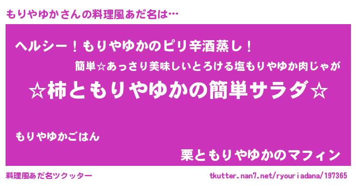 | 意味不明あだ名 | 『自称もりやゆか』『永久保存もりやゆか』 |