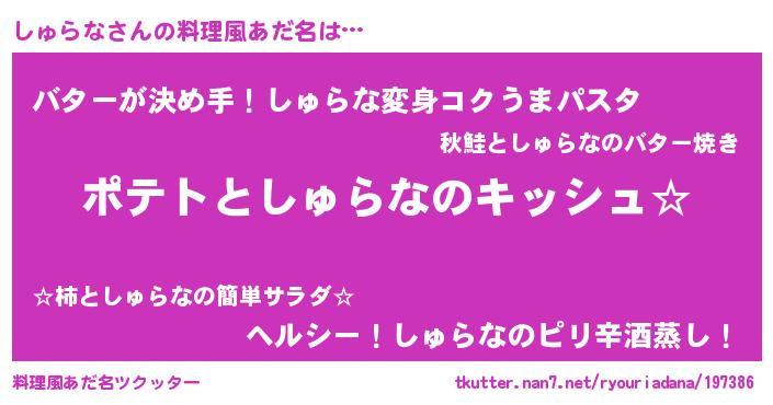 | ヒーロー風カッコイイあだ名 | 『幻影騎士シュ』『慈愛の使者しゅらな』 |