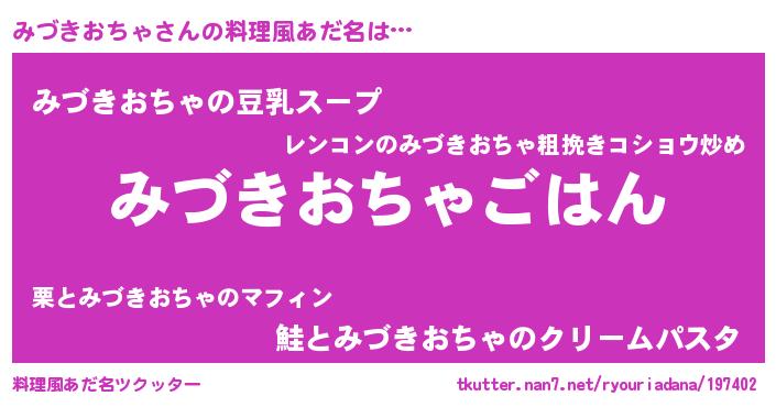| 男性向けラノベタイトル風あだ名 | 『転生したらみづきおちゃだった件』 |