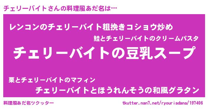 | 胡散臭い通販商品みたいなあだ名 | 『信頼と実績のサプリメント…その名も「チェリーバイト」』 |