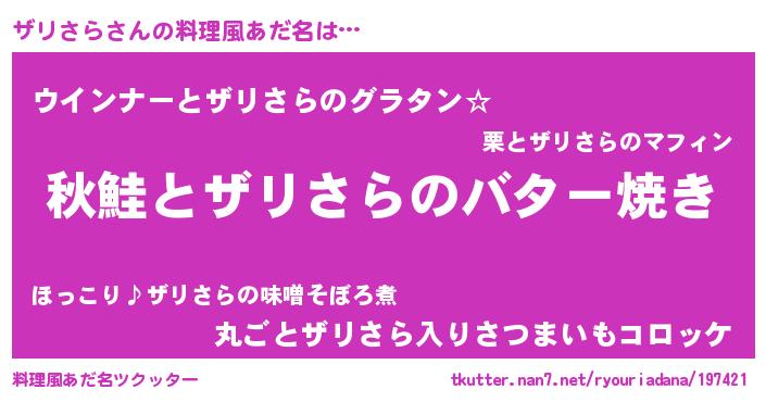 | ヒーロー風カッコイイあだ名 | 『ネオザリサラ』『ウルトラザリさらマン』 |