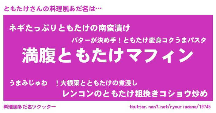 | 意味不明あだ名 | 『永久保存ともたけ』『ペロリンともたけ』 |