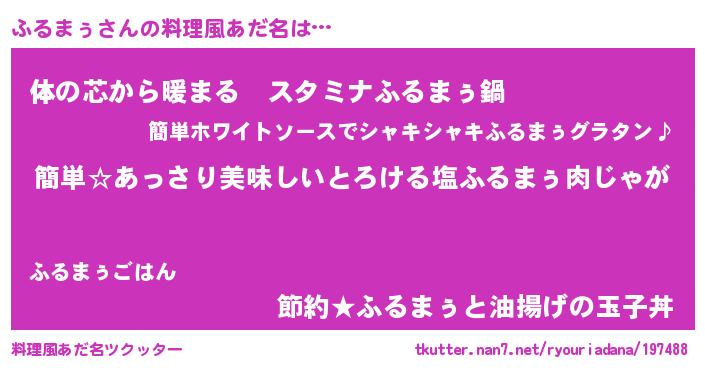 | ヘコむあだ名 | 『ふるまぅ(笑)』『牛乳』『ふるっぺ』 |