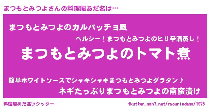 | 女子向けラノベタイトル風あだ名 | 『まつもとみつよ夫妻のなれそめ』 |