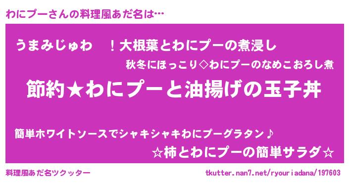 | 意味不明あだ名 | 『ペロリンわにプー』『ニラ科わにプー属』 |