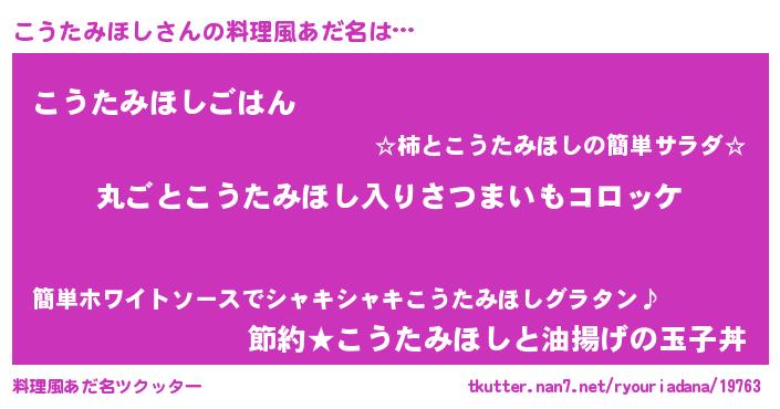 | 意味不明あだ名 | 『住所不定無職こうたみほし(62歳)』 |