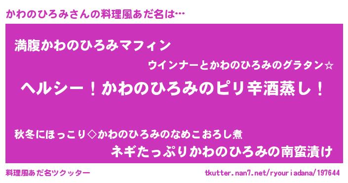 | 男性向けラノベタイトル風あだ名 | 『Re:かわのひろみから始める異世界生活』 |