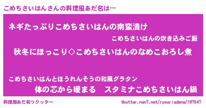 | 2回繰り返すあだ名 | 『こめこめ』『ここめめ』『だるだる』 |