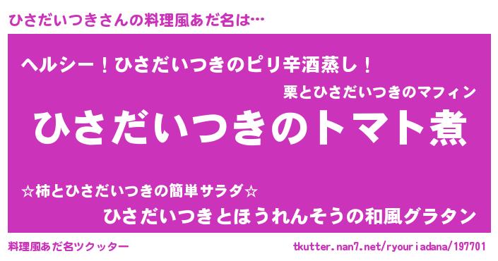 | 女子向けラノベタイトル風あだ名 | 『ひさだいつき夫妻のなれそめ』 |
