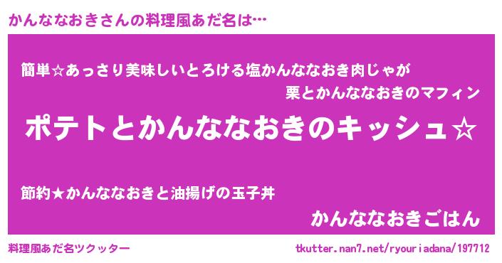 | 女子向けラノベタイトル風あだ名 | 『かんななおきの卵を拾いまして』 |