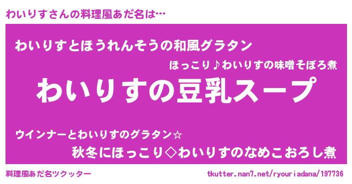 | 恥ずかしいあだ名 | 『ワイリンリン』『プリティーわいりす』 |
