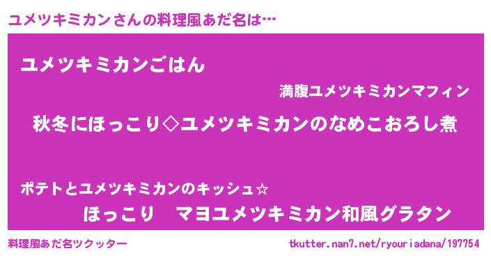 | 男性向けラノベタイトル風あだ名 | 『ユメツキミカンに滅ぼされるだけの簡単なお仕事です』 |