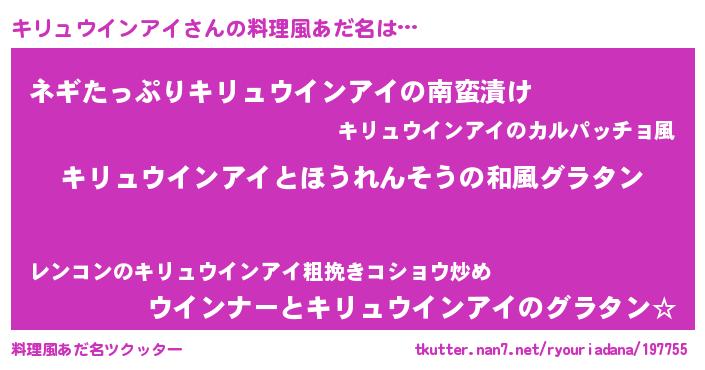 | 自動車の名前っぽいあだ名 | 『キールスリイス』『キリティマ』 |