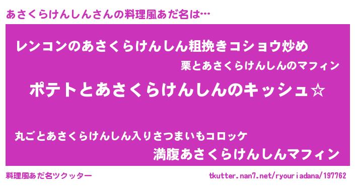 | ポケモン風あだ名 | 『ヒアサクラケンシン』『アサセウス』 |