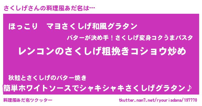 | 胡散臭い通販商品みたいなあだ名 | 『ガンによく効くアガリクス…その名も「さくしげ」』 |