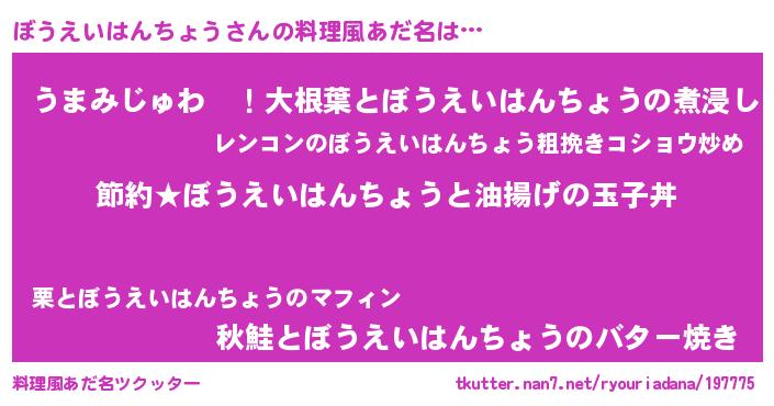 | 意味不明あだ名 | 『ペロリンぼうえいはんちょう』 |