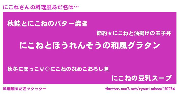 | ヘコむあだ名 | 『にこね(笑)』『にこっぺ』 |