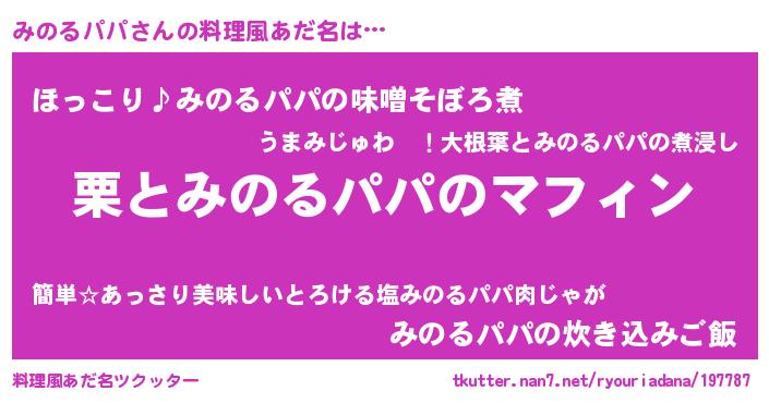 | ヒーロー風カッコイイあだ名 | 『スーパーミノルパパ』『ネオミノルパパ』 |