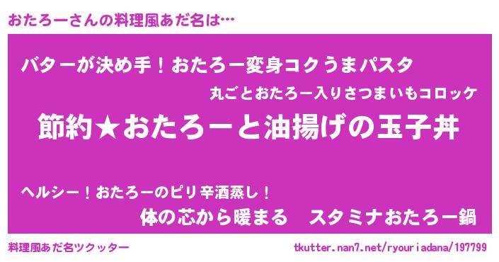 | 意味不明あだ名 | 『ペロリンおたろー』『自称おたろー』 |