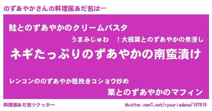 | 胡散臭い通販商品みたいなあだ名 | 『億万長者になれるブレスレット…その名も「のずあやか」』 |