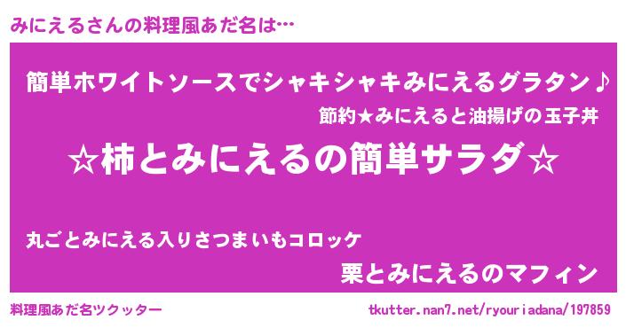 | 胡散臭い通販商品みたいなあだ名 | 『信頼と実績のサプリメント…その名も「みにえる」』 |