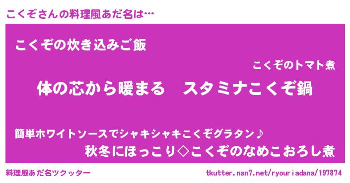 | 意味不明あだ名 | 『こくぞフォーエバー』『永久保存こくぞ』 |