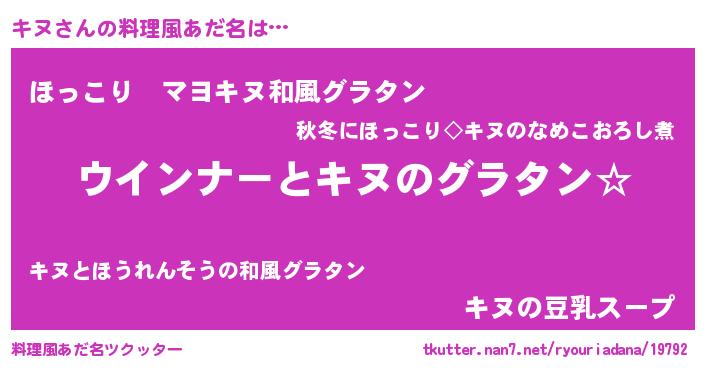 | ポケモン風あだ名 | 『キヌダネ』『キーヌイ』『ヒキヌ』 |