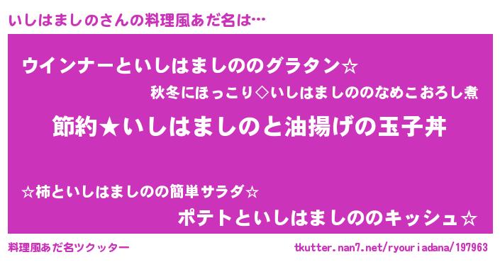 | ピコ太郎風あだ名 | 『イコ三郎』『ピイ六郎』『イシ次郎』 |