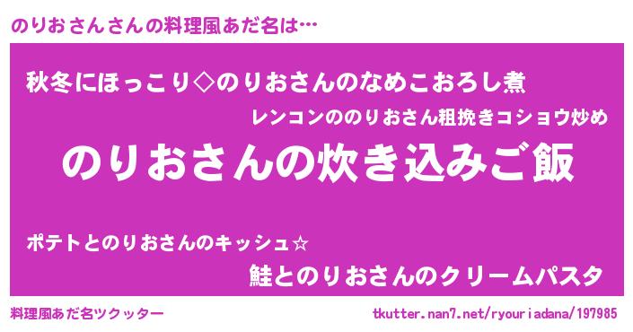 | 男性向けラノベタイトル風あだ名 | 『うちののりおさんが世界を掌握している!』 |